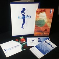 More logo and branding design for Evasion Nightclub on a series of material. Opening night of the club, a drinks menu, invite and A4 pocket folder.